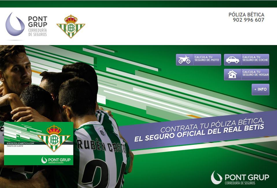 Pont Grup ha renovado su acuerdo de patrocinio con el equipo de fútbol sevillano Real Betis. Como parte del acuerdo la ‘Póliza Bética’ contará con sorteos mensuales y un gran sorteo final entre aquellos que contraten un seguro de moto, Auto u Hogar a través de polizabetica.com. Además, tanto el conjunto verdiblanco como la correduría preparan acciones para agradecer a la afición la buena acogida.