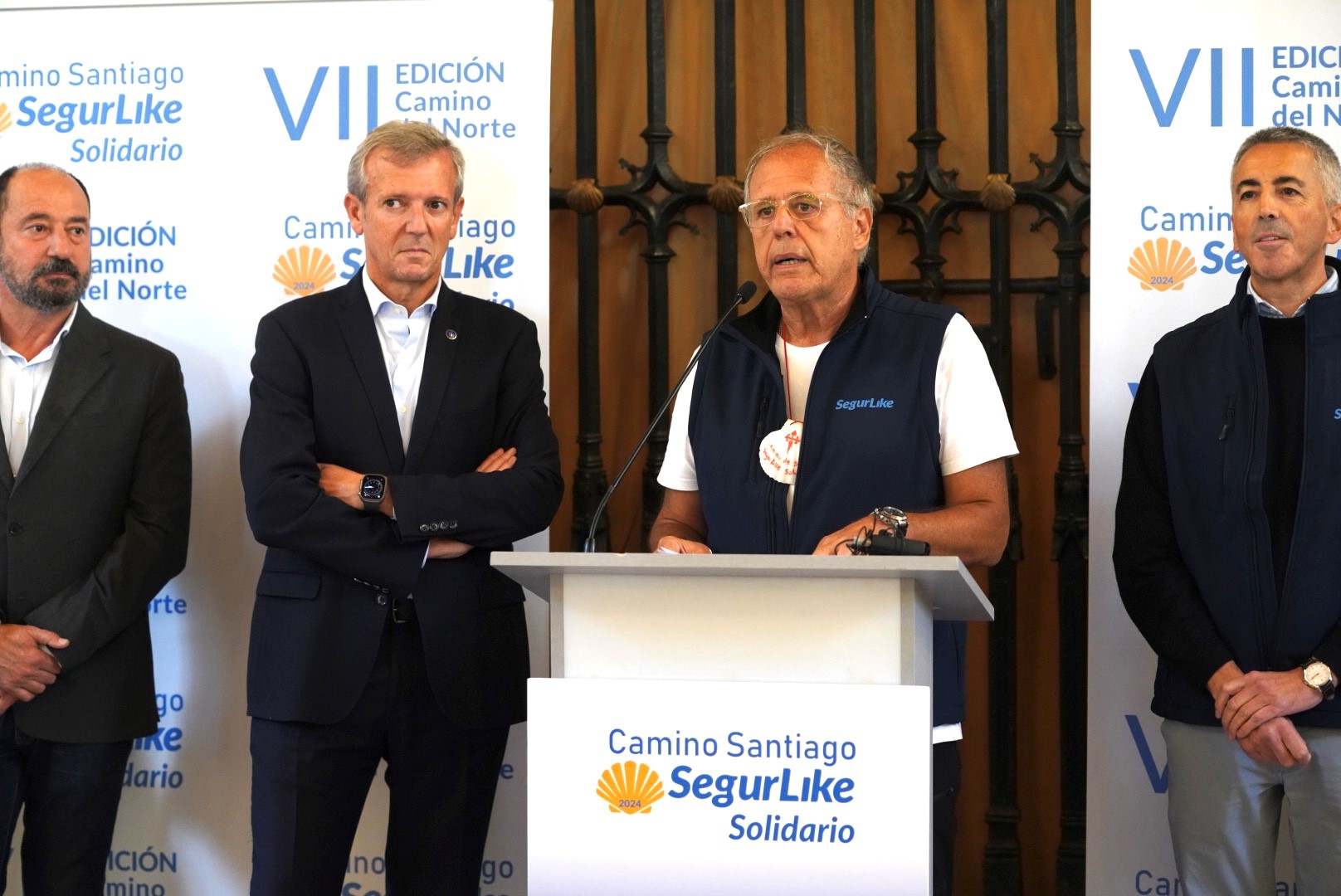 Los participantes en la VII Edición del Camino SegurLike Solidario que organiza Cojebro han tenido una cita especial al final su peregrinaje. El presidente de la Xunta de Galicia, Alfonso Rueda, junto a otros miembros del Gobierno autonómico, les ha recibido al final de su peregrinación de 100 kilómetros del Camino del Norte entre Baamonde, en Lugo, y Santiago de Compostela.
