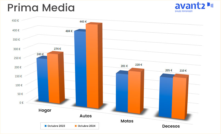 La prima media de los principales ramos -Hogar, Autos y Motos, Decesos y Salud- continúa al alza en el mes de octubre respecto al mismo periodo de 2023, según datos facilitados por Codeoscopic.
