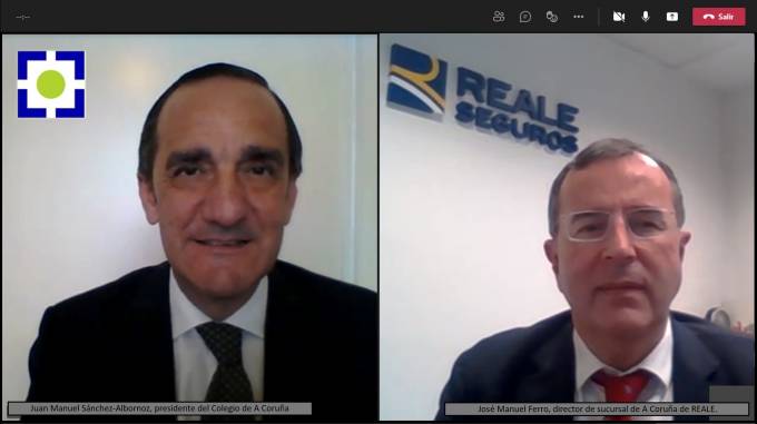 Juan Manuel Sánchez-Albornoz, presidente del Colegio de Mediadores de La Coruña, y José Manuel Ferro, director de la sucursal de Reale en la zona, mantuvieron un encuentro para reforzar la alianza entre ambas partes. Señala que de esta manera apoyan la figura del mediador de seguros profesional y buscan la "mejora continua en el desempeño de su actividad".