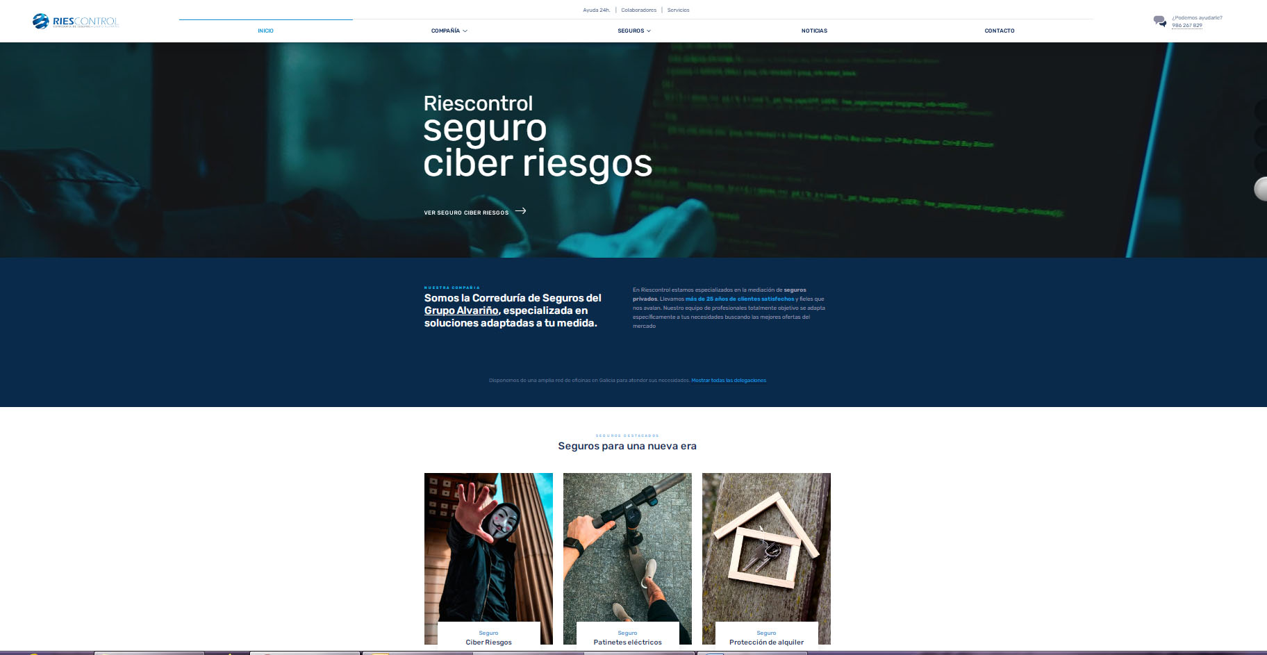 En la web puede encontrarse toda la oferta de seguros tanto para empresas como para particulares de la firma del Grupo Alvariño. Además, Riescontrol pone a disposición de sus clientes una amplia gama de productos pensados en las nuevas necesidades de aseguramiento, innovando con pólizas para Protección de Alquileres, Antiokupas, Vehículos de Movilidad Personal, Mascotas, Hípica, Embarcaciones de Recreo, Vehículos Clásicos, Vehículos de Competición, Coche por Coche o Retirada de Carnet, entre otros productos.