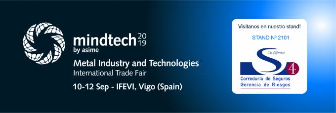 El Grupo S4 ha confirmado su presencia con stand en la Metal Industry and Technologies International Trade Fair (Mindtech), organizada por Asime en el Instituto Ferial de Vigo. Participa como "como correduría de seguros de referencia para empresas ligadas a la innovación tecnológica e industrial". Entre las empresas expositoras en el evento se encuentran empresas especializadas en robótica, fabricación aditiva o industria aerospacial y que convivirán con starts up ligadas a la revolución 4.0.