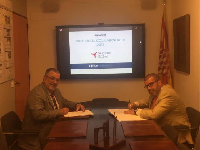 Jordi Triola, presidente del Colegio de Girona, y Ramon Ferrer, director territorial de Seguros Bilbao, han renovado el protocolo de colaboración entre ambas entidades para "fortalecer su relación y promover el desarrollo comercial de los mediadores gerundenses".