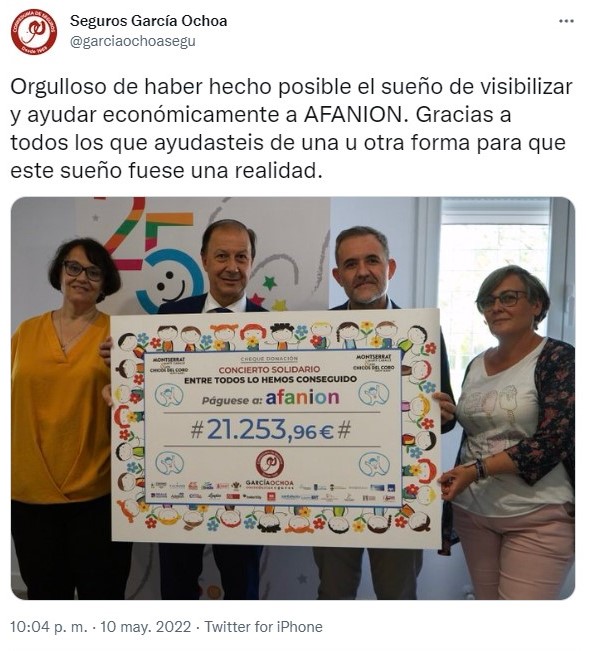 Seguros García-Ochoa opta a un galardón por su concierto benéfico a favor de Afanion