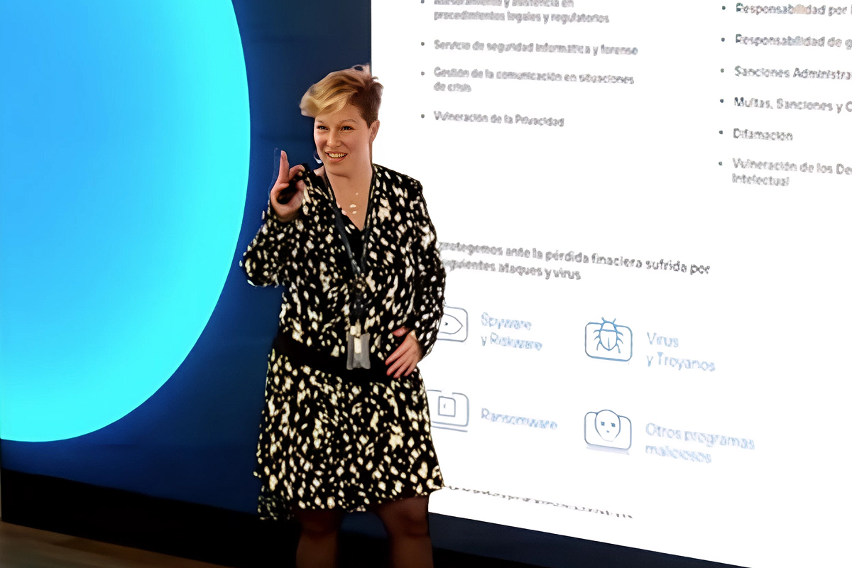 Durante la sesión, esta profesional ha explicado la importancia del ciberseguro como herramienta esencial para proteger a empresas y particulares frente a los crecientes riesgos digitales. También, ha destacado la relevancia de identificar las vulnerabilidades tecnológicas, evaluar los riesgos y comprender cómo un ciberseguro puede mitigar los impactos económicos derivados de un ciberataque. Y ha presentado el producto de Telefónica Seguro.