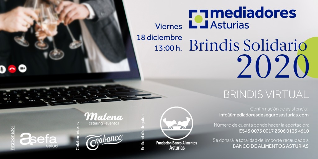 El próximo 18 de diciembre a las 13 h. todos los asistentes alzarán juntos sus copas, a través de Internet conectados vía Webex, encuentro en el que participará también el presidente de la Fundación Banco de Alimentos de Asturias, Bernardo Sopera Solares y explicará la labor que se lleva a cabo desde esta organización y a qué se destinará el importe recaudado.