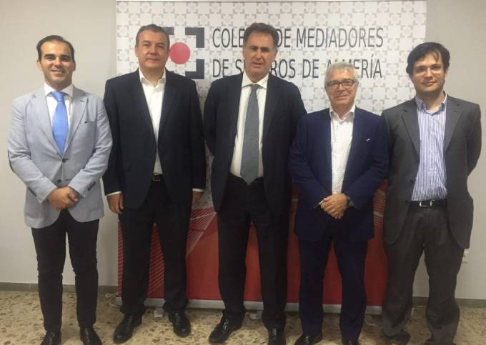 Unión Alcoyana y el Colegio de Almería han firmado un protocolo de colaboración. Por parte de la institución colegial, han asistido al acto de la firma Juan Antonio Márquez, su presidente; José María Gil, vicepresidente segundo; y Elías Alonso Aparicio, secretario. Y por parte de la aseguradora, Carlos Mirón y Gerardo Pérez, director comercial e inspector comercial, respectivamente.