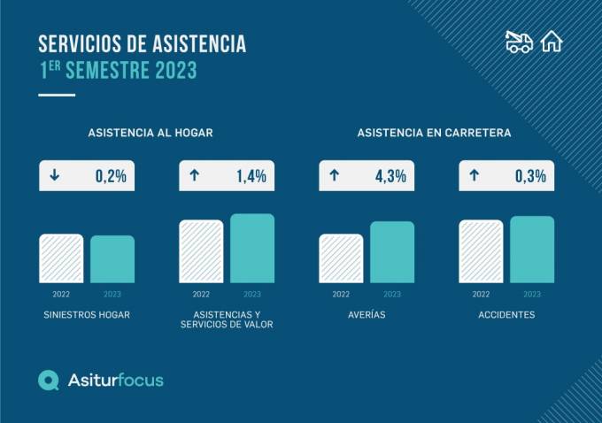 Por otra parte, Asitur informa de que la asistencia en carretera ha experimentado un ligero crecimiento en la primera mitad del año 2023, especialmente por el aumento de las asistencias derivadas de averías, que han crecido un 4,3%. Las asistencias por accidente han crecido solamente un 0,3%.