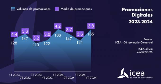 Los datos de ICEA confirman que el pasado año "se observó un notable incremento en la actividad promocional de las entidades en sus activos digitales en comparación con periodos anteriores, concentrándose un mayor número de acciones promocionales durante los primeros trimestres del año". Al cierre del año se elevó a 3,8 el número medio de acciones promocionales de las compañías, en comparación con las 3,5 de 2023. A ello se une que en el último trimestre del año también se registró la participación de un mayor número de entidades aseguradoras diferentes.
