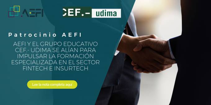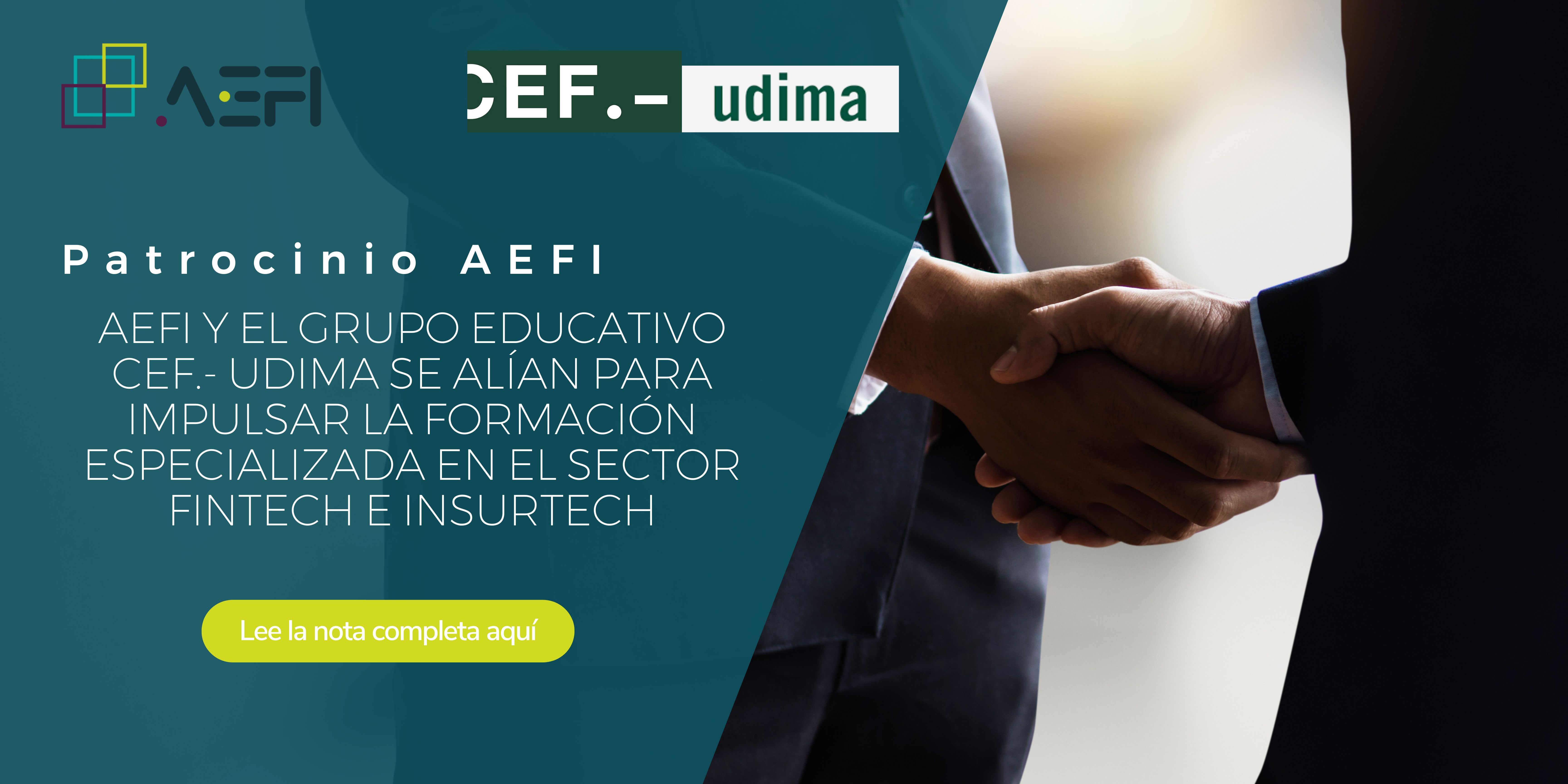 El Grupo Educativo CEF-UDIMA se convertirá en nuevo partner académico de AEFI con el objetivo de unir fuerzas y trabajar conjuntamente en la promoción del talento y el conocimiento del ecosistema FinTech e InsurTech.