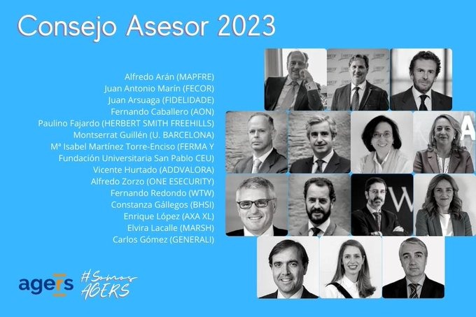 La composición definitiva del Consejo queda conformada por: Alfredo Arán (Mapfre Global Risks); Juan Antonio Marín (Fecor); Juan Arsuaga (Fidelidade), Fernando Caballero (Aon), Paulino Fajardo (Herbert Smith Freehills), Montserrat Guillén (Universidad de Barcelona), Mª Isabel Martínez (CEU San Pablo), Alfredo Zorzo (One eSecurity), Vicente Hurtado (Addvalora), Fernando Redondo (WTW), Elvira Lacalle (Marsh) y los mencionados Enrique López, Carlos Gómez y Constanza Gállegos. Junto a ellos, Juan Carlos López Porcel (presidente de Agers y director de Riesgos y Seguros en Arcelor Mittal), Gonzalo Iturmedi (secretario del Consejo y de la Junta Directiva de Agers) y Alicia Soler (Executive Manager de Agers).