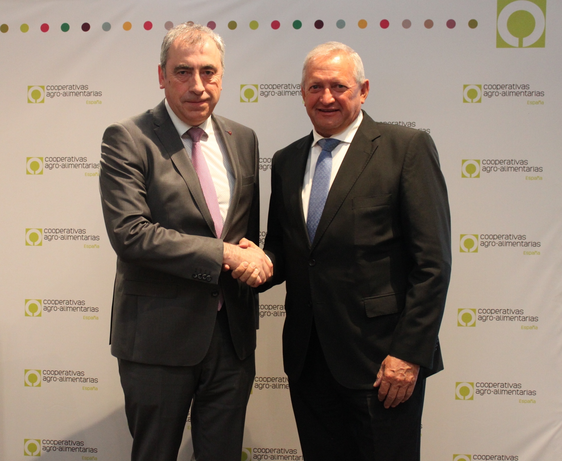 El convenio ha sido firmado entre el presidente de Cooperativas Agro-alimentarias de España, Ángel Villafranca, y el presidente de Agropelayo, Alfredo Arbeloa.