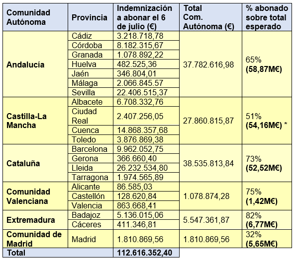 Las indemnizaciones se han abonado este jueves 6 de julio y corresponden a siniestros en zonas productoras tempranas, donde la evaluación de daños comenzó de manera generalizada a finales de mayo, como son Andalucía, Castilla-La Mancha (a excepción de Guadalajara, cuya producción es más tardía), Cataluña, Comunidad Valenciana, Extremadura y Madrid. De esta forma, Agroseguro subraya que continúa cumpliendo con el plazo medio de pago de los últimos años, situado en 30 días tras la tasación definitiva del siniestro.