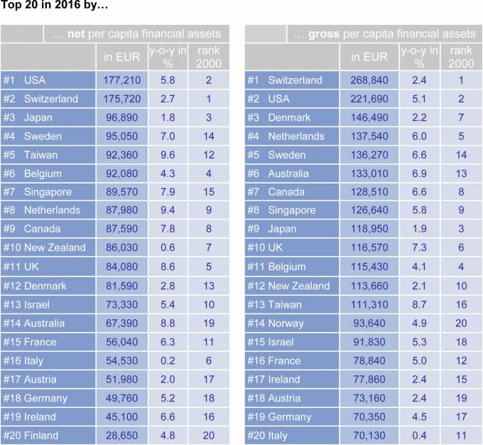 Allianz ha presentado la 8ª edición de su informe Global Wealth Report, que analiza la evolución de la deuda y los activos de las familias en más de 50 países. Tras un débil 2015 (+4,7%), los activos financieros crecieron en 2016 un 7,1% hasta rozar los 170 billones de euros, alcanzando un nuevo récord. Casi el 70% del crecimiento se debió al aumento del valor de las carteras, y solo un 30% a nuevo ahorro. El informe constata que el comportamiento de los ahorradores sigue siendo muy adverso al riesgo.