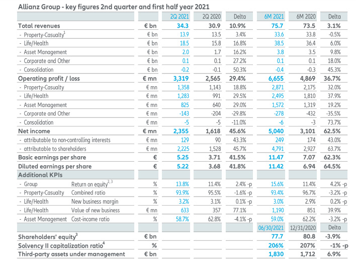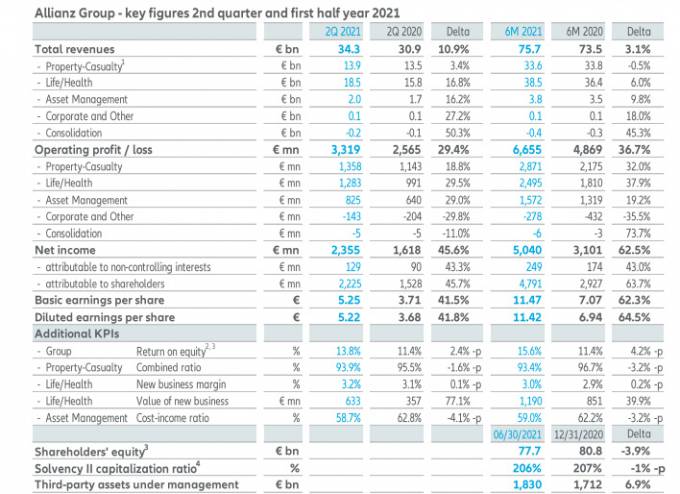 El grupo cosechó un beneficio de 5.040 millones, un 62,5% más que en el primer semestre de 2020. Por líneas de negocio, Vida y Salud mejoró un 38%, mientras que seguros generales lo hico un 32%; la gestión de activos mejoró su aportación al beneficio en un 19%. El margen de solvencia se sitúa en el 2016%, un punto porcentual menos que un año antes.