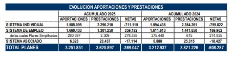 En el conjunto del año, las aportaciones para el total de los Planes de Pensiones ascendieron a 3.252 millones de euros, lo que significa un ligero incremento de tan solo 39 millones de euros respecto a 2024. Y las prestaciones fueron algo menores: 3.620 millones de euros en 2025 frente a los 3.821 millones en 2024. Por este motivo, se ha logrado ajustar las prestaciones netas de 2025 hasta los 369 millones, 239 menos que en 2024.