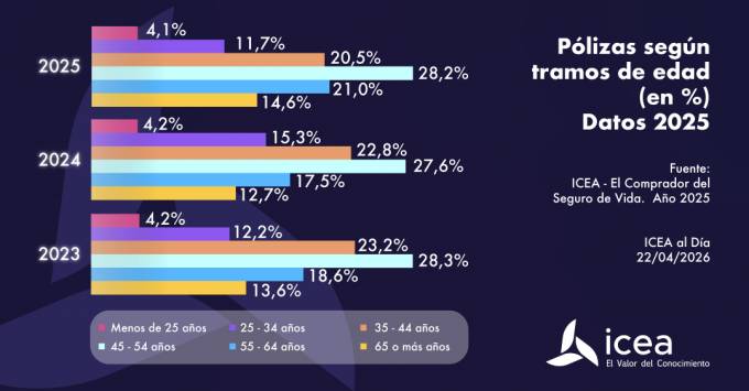 El estudio anual de ICEA sobre el comprador de seguros de Vida muestra que, en 2025, el perfil medio era el de un varón (el 55,2% de los compradores), de entre 45 y 54 años (el 28,2% del total), residente en capitales de provincia (un 26,8%), que contrata seguros de riesgo con un capital asegurado medio de 61.923 euros y con una duración de menos de cuatro años (el 74,6%).