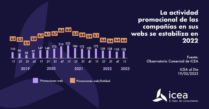 Los datos de ICEA confirman que en los últimos trimestres la actividad promocional de las entidades en sus webs se ha consolidado, con unos resultados superiores a los obtenidos antes de 2020. Precisa que, a diferencia de lo ocurrido en los años de pandemia, donde la actividad fue mayor, "la estabilidad ha sido la protagonista en las acciones promocionales durante 2022".