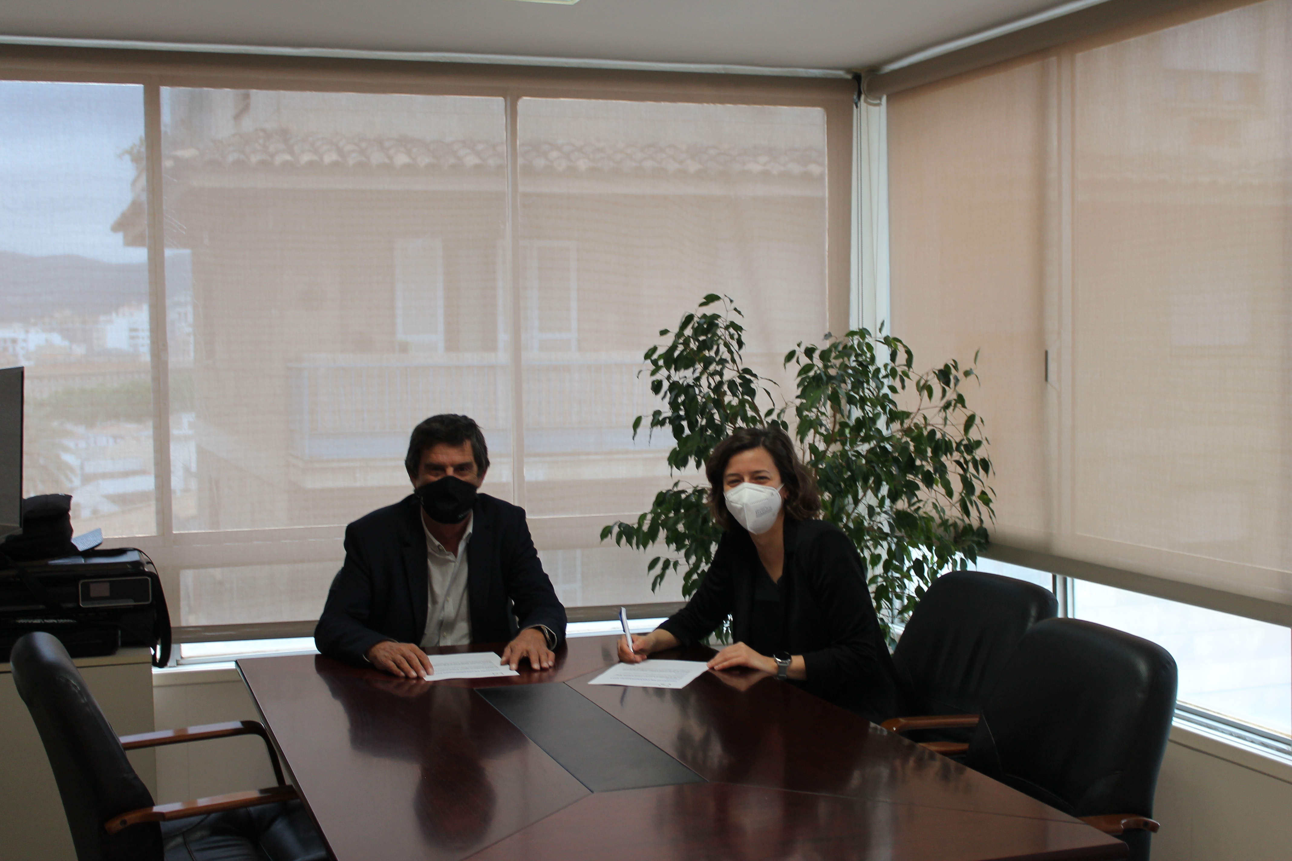 El presidente del colegio, Daniel Salamanca, y la directora Territorial de Levante y Baleares de AXA, Mar Romero, rubricaron la firma en la propia institución colegial.