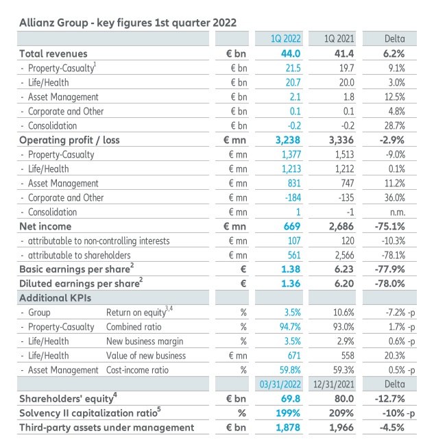 Oliver Bäte, director ejecutivo de Allianz SE, ha señalado que "los resultados demuestran que la compañía puede soportar importantes presiones geopolíticas y económicas". Además comentó que "nuestra compañía ha tomado claras decisiones comerciales en respuesta a la invasión rusa en Ucrania".