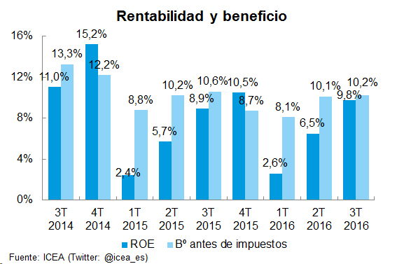 Los datos de ICEA confirman que el beneficio antes de impuestos sobre primas imputadas de las aseguradoras españolas se mantiene por encima del 10% a septiembre de 2016, con una caída del 0,4% en comparación con el de un año antes.