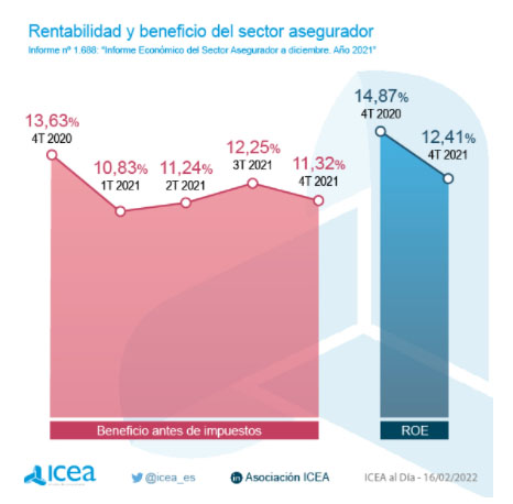 De esta manera, si el volumen total de primas del seguro a cierre de 2021 fue de 61.835 millones de euros nos encontramos que el beneficio antes de impuestos ascendió hasta los 6.999,7 millones.