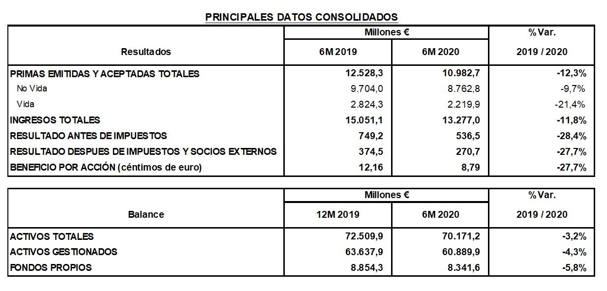 Respecto a la Unidad de Reaseguro, el cierre del primer semestre contabilizó primas por 2.123 millones, lo que indica una caída del 5%, con un resultado negativo de 48 millones por los siniestros del Covid-19 (57 millones) y las catástrofes de Puerto Rico y España ya comentadas.