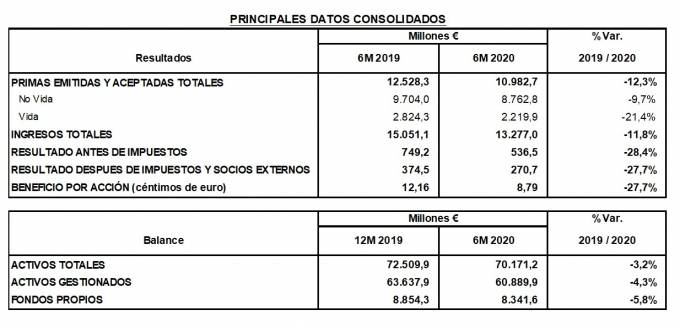 Respecto a la evolución del negocio en la primera parte del año, las primas de la Unidad de Seguros sumaron 9.095 millones, un cifra un 14,4% inferior que un años antes. El beneficio de estas unidades registró un crecimiento del 12,7% hasta los 429 millones, "demostrando la resiliencia del negocio core", resalta la compañía. Esta unidad ha obtenido un ratio combinado del 93,8%.
