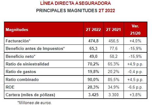 Línea Directa ha registrado un beneficio neto de 48,9 millones de euros en el segundo trimestre del ejercicio 2022, lo que supone un descenso del 15,9%, viéndose afectado principalmente por la actual situación de hiperinflación y su impacto en el coste de reparación y las indemnizaciones.