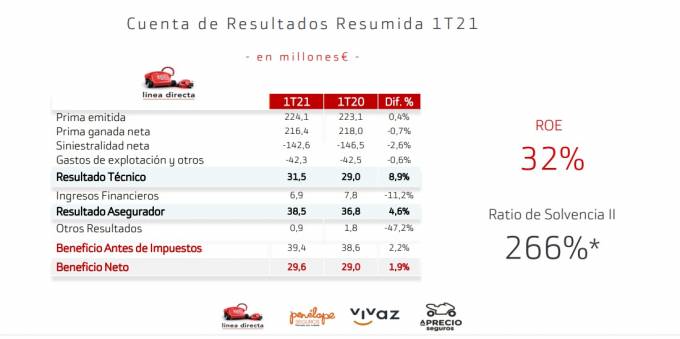 El beneficio neto de Línea Directa ha crecido un 1,9% en el trimestre en sus últimos resultados antes de salir a Bolsa hasta los 29,6 millones de euros. El resultado antes de impuestos alcanzó los 39,4 millones de euros, un 2,2% más que hace un año.