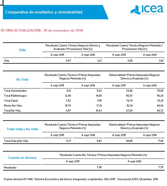 El resultado de la cuenta técnica se situó en el 9,42% del negocio retenido a finales de septiembre.