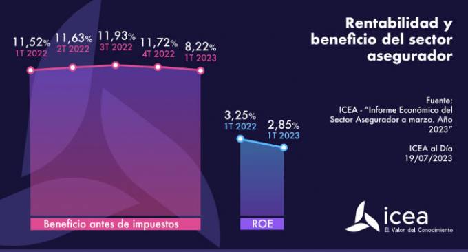 El beneficio del sector asegurador antes de impuestos al cierre de marzo fue del 8,22% de las primas imputadas. Este dato es inferior en 3,3 puntos porcentuales respecto al mismo periodo del año anterior cuando el beneficio se situaba en el 11,52% de las primas, según los datos de ICEA.