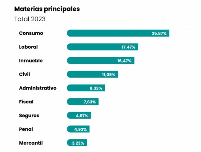 A cierre de 2023, los temas concretos más consultados fueron la devolución de los gastos de constitución de hipotecas, las cuestiones relacionadas con el contrato de alquiler de la vivienda y la solicitud de prestaciones a la Seguridad Social, fundamentalmente, por jubilación, baja médica e incapacidad permanente, fueron los tres asuntos legales más consultados por los españoles en 2023.