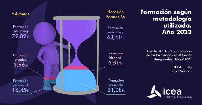 El pasado año, el porcentaje de empleados del sector asegurador que recibió algún tipo de formación se situó en un 98,44% sobre el total de la plantilla. Según ICEA, las horas de formación suponen el 1,99% de la jornada total anual teórica, siendo la casi totalidad de estas horas en horario laboral.