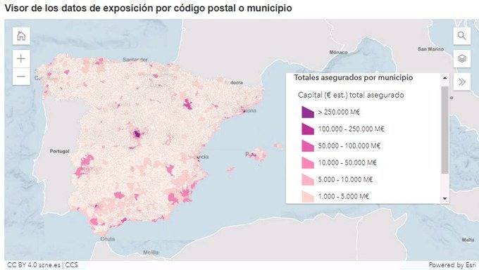 El Consorcio de Compensación de Seguros (CCS) publica los datos de capitales asegurados en daños a los bienes por código postal y clase de riesgo.