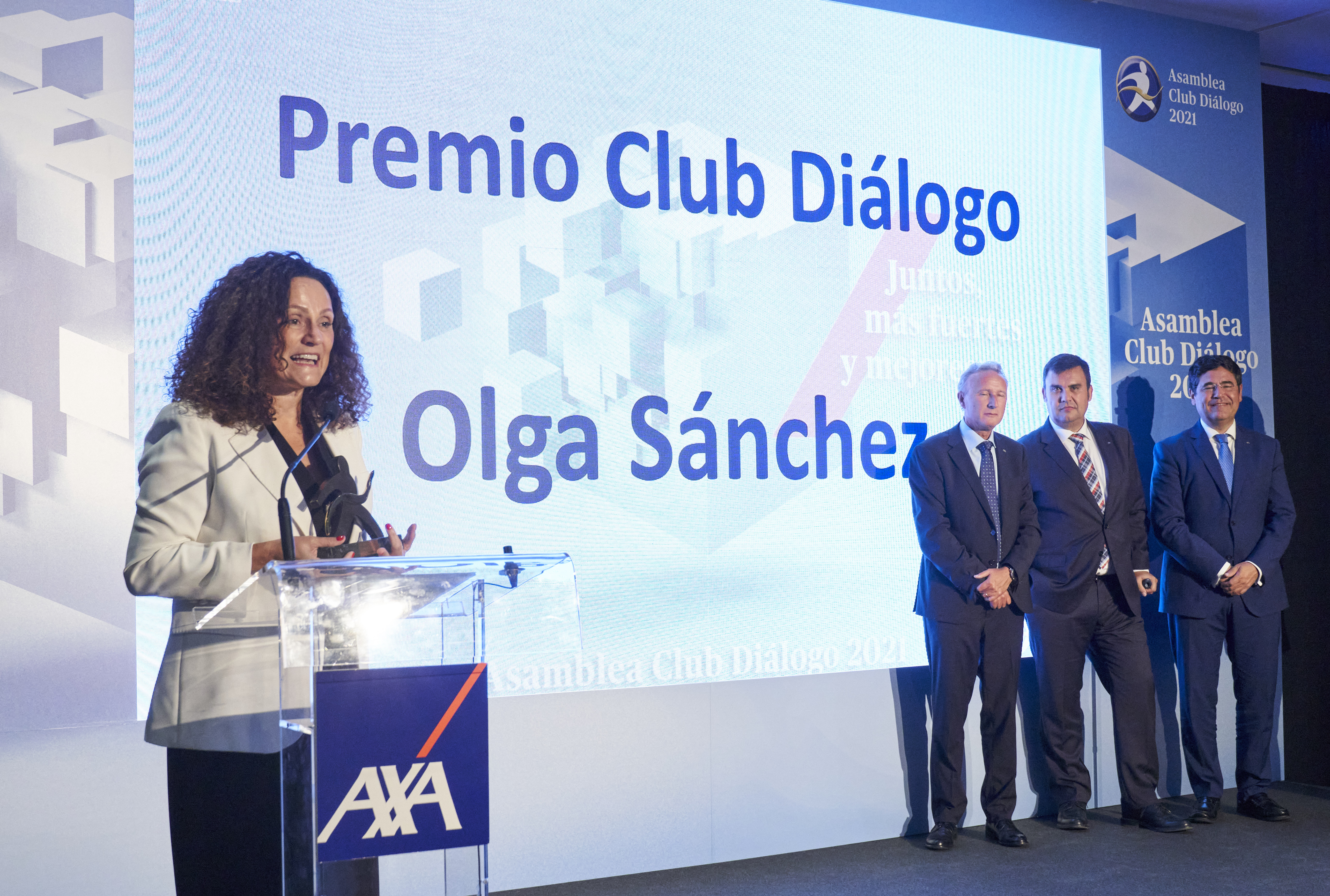 La Asociación Club Diálogo, constituida en 2006 y que representa a todos los agentes de AXA en España, ha entregado su IX Premio a Olga Sánchez, CEO de AXA España, "por considerarla el máximo exponente de una relación de apoyo y confianza a los mediadores exclusivos".