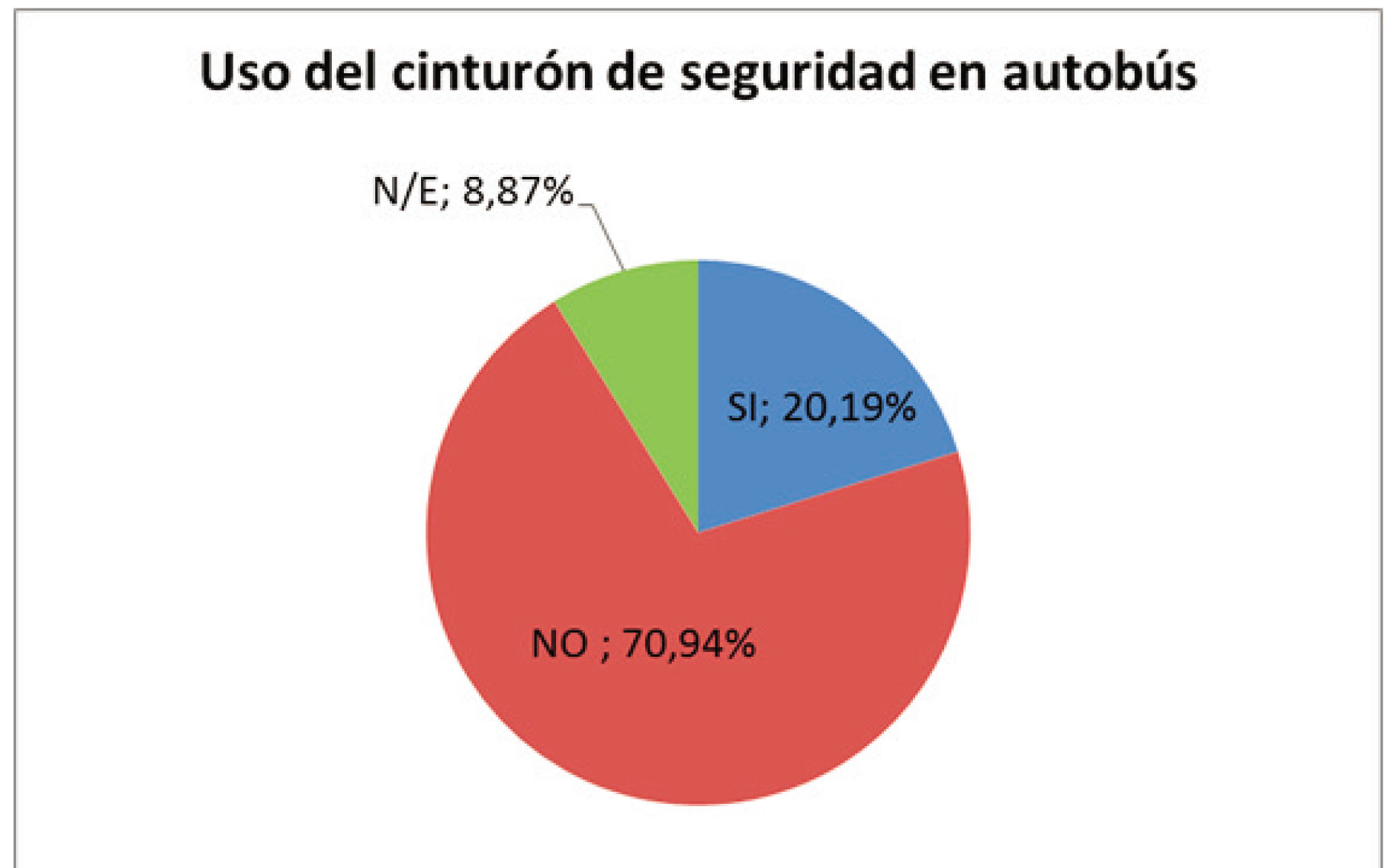 Según un informe de Fundación Mapfre, realizado en colaboración con ALSA, Esteban Rivas, Grupo Avanza y De Blas, el uso del cinturón de seguridad en los autobuses reduciría hasta el 80% la probabilidad de sufrir lesiones graves o mortales en caso de accidente. Sin embargo, en España tan solo 2 de cada 10 personas que viajan en autobús lo utiliza en los trayectos de largo recorrido. En corto recorrido, donde la percepción del riesgo es menor, la cifra es preocupante y tan sólo 1 de cada 10 pasajeros lo utiliza a pesar de que, por Ley, es obligatorio siempre y cuando el autobús disponga de ellos.