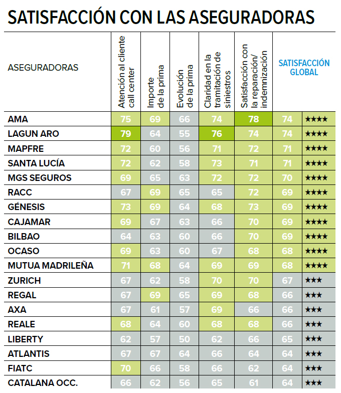 Bajan en puntuación, pero obtienen 4 estrellas RACC, Génesis, Cajamar, Seguros Bilbao, Ocaso y Mutua Madrileña.