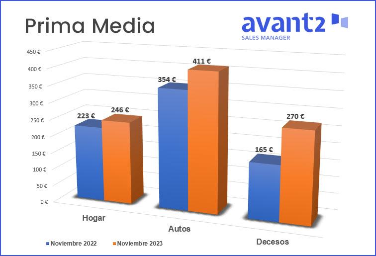 Los datos de Codeoscopic a través del multitarificador Avant2 Sales Manager vuelven a recoger los crecimientos de la prima media de nueva producción. En noviembre, el aumento en Hogar fue del 10% mientras en Autos se situó en el 16%