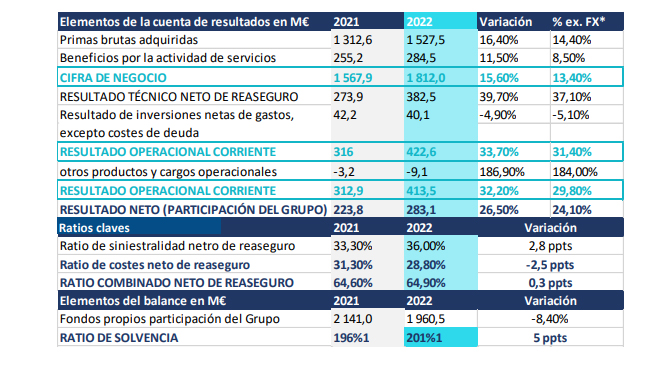 Coface ha cerrado 2022 con un beneficio de 283,1 millones, lo que muestra un crecimiento del 26,5% respecto al pasado ejercicio. La entidad ha comunicado una cifra de negocio consolidada de 1.812 millones de euros, con un crecimiento del 11,5%.