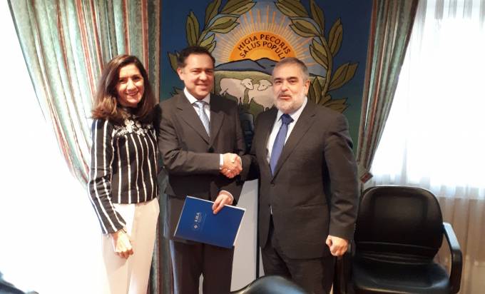 Francisco Javier Balado, presidente del Colegio coruñés, y Miguel Ángel Vázquez, responsable de Colectivos de la compañía fueron los encargados de la firma a la que también asistieron Javier Sande director Territorial de la Mutua en Galicia y la delegada de A.M.A. en La Coruña Sonia Nuñez.