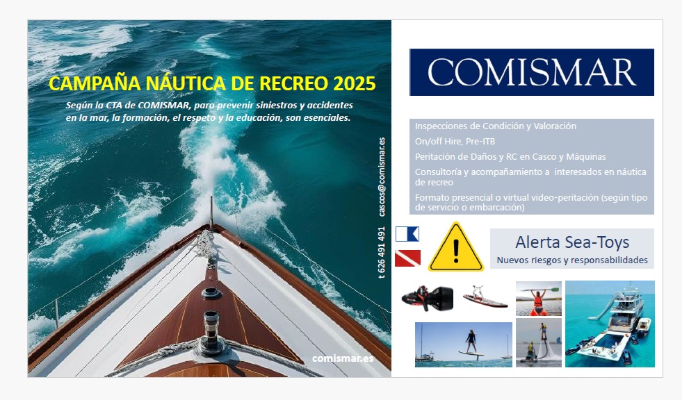 Comismar ha alertado sobre el aumento de la siniestralidad en la navegación de recreo. Según se abordó en la última reunión de su comisión técnica asesora se están produciendo concentraciones alarmantes de tráficos de EE.RR. convencionales, junto con todo tipo de artefactos, motos, piraguas, tablas, y todo tipo de los llamados TOYs marinos. Esta concentración de tantos elementos distintos cuya evolución y gobierno en la mar es tan diferente, junto a la falta de homogeneizacion y conocimiento de la normativa existente, mayor gobernanza, etc. en fondeaderos, bocanas, zonas próximas a playas y puertos, ponen en riesgo la vida humana en la mar.