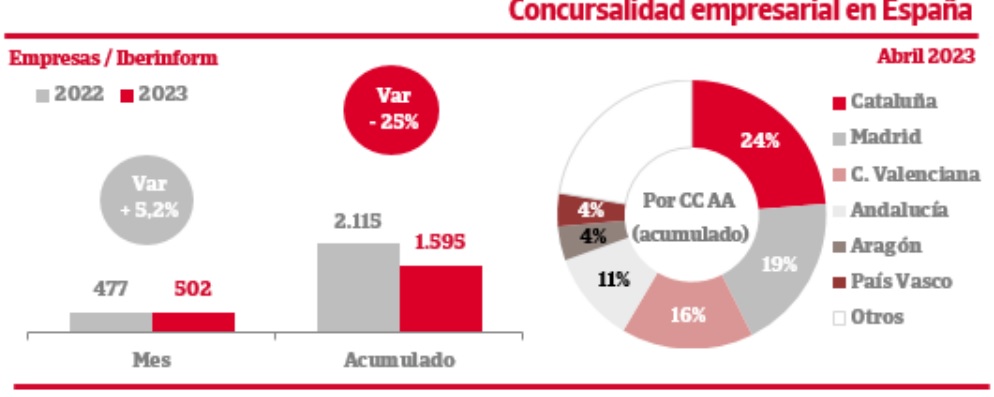 Las insolvencias empresariales han crecido un 5,2% en el mes de abril, según datos de Iberinform.