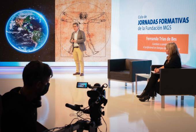Fundación MGS ha organizado dentro su Ciclo de Jornadas Formativas dirigidas a empleados y mediadores de MGS Seguros una jornada sobre el cambio. Fernando Trías de Bes, reconocido economista y escritor, fue el encargado de la ponencia titulada 'Cambiar o cambiar: el profesional en tiempos de incertidumbre' y transmitida en streaming desde el auditorio de la aseguradora en Barcelona.