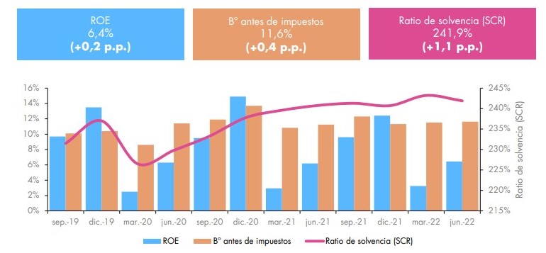 También ha mejorado el ROE del sector -rentabilidad sobre los recursos propios-, que se ha situado en el 6,4%, lo que supone un incremento de 0,2 puntos respecto a junio de 2021.