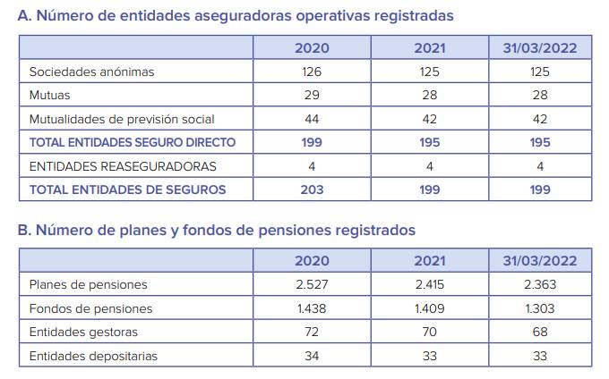 Si analizamos los datos del supervisor encontramos que la reducción de entidades se ha dado en las 3 formas jurídicas: las sociedades anónimas han pasado de 126 a 125, mientras que las mutuas suman 28, una menos que en 2020 y las Mutuas de Previsión Social totalizan 42, dos menos que en el ejercicio anterior.