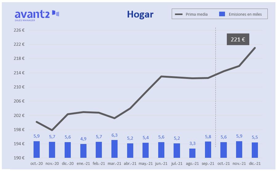 En cuanto a Hogar, la contratación de seguros de este ramo se elevó un 5% en 2021 y la subida de primas experimentó un crecimiento del 5,6%.