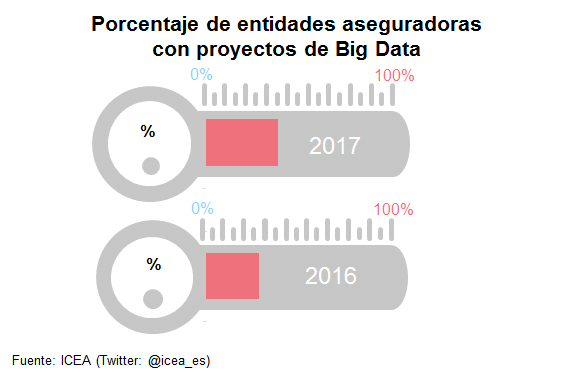 El pasado año creció en un 40% el número de aseguradoras que están implantando proyectos de Big Data en comparación con el anterior, según los datos de ICEA. Precisa que en el 75% de los casos los proyectos están liderados por más de un departamento, siendo el TI el más presente. Pero solo el 30% de los proyectos cuenta con el respaldo de la dirección general.