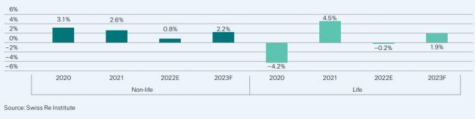 Según estimaciones del estudio World Insurance sigma del Swiss Re Institute se prevé que el volumen de primas de seguros mundiales supere los 7 billones de dólares a finales de año. Con todo, la combinación de una economía mundial en franca desaceleración y la inflación pesarán sobre el crecimiento total de las primas, con una previsión de crecimiento medio anual por debajo de la tendencia del 1,2% en términos reales durante los dos años.