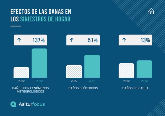 Apunta dentro de su análisis que los siniestros derivados de fenómenos meteorológicos han crecido en un 137%; los daños eléctricos han aumentado un 51%, mientras que los de agua lo han hecho un 13% y un 10,5% las roturas. Otras tipologías mantienen números similares al pasado año como cristales y el robo o la RC han decrecido.
